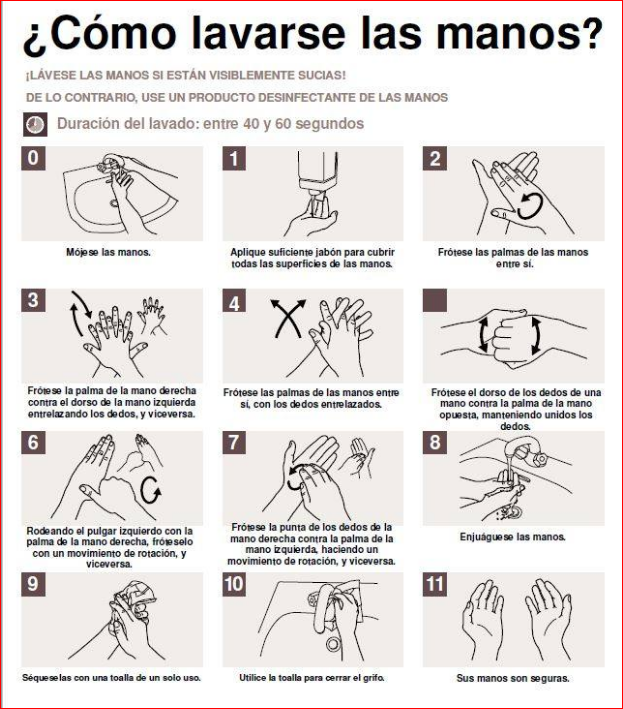 mesas, etc. se limpian diariamente y se desinfectan continuamente durante el día.